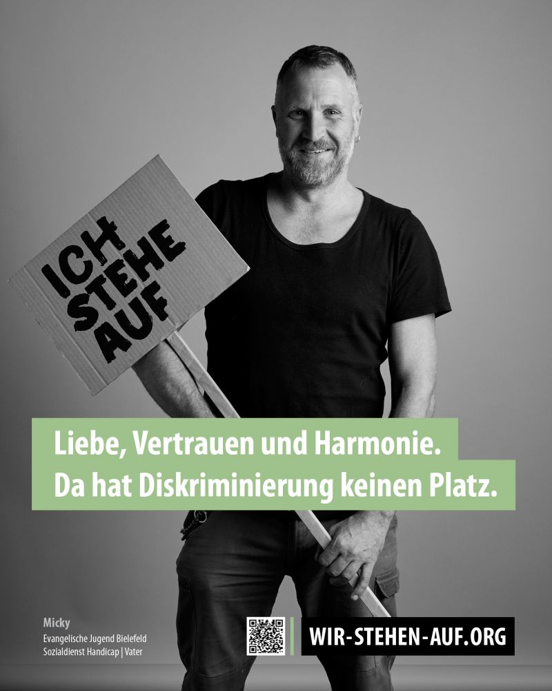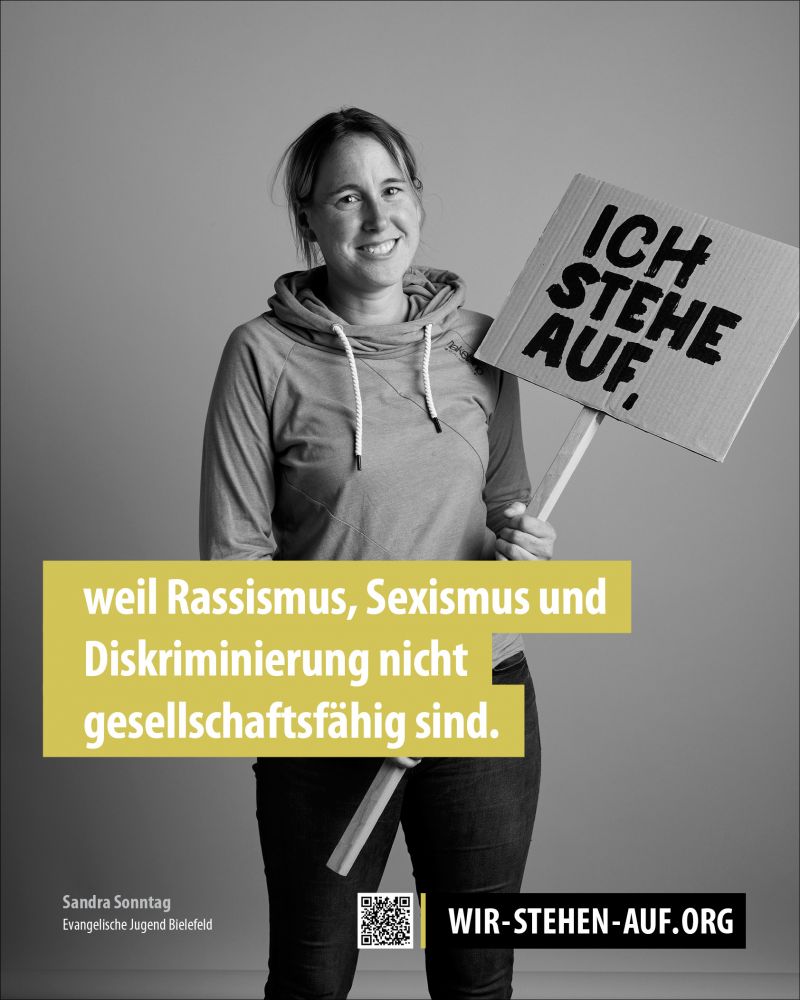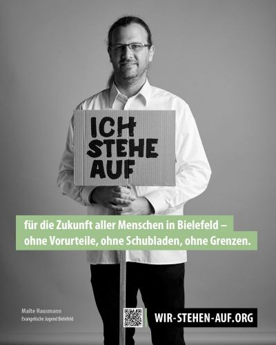 Wir als Evangelische Jugend Bielefeld stehen für diese offene und tolerante Gesellschaft. Deshalb supporten wir die Fotokampagne „Wir Stehen Auf“
