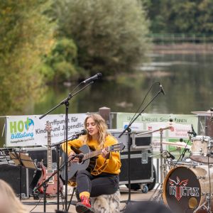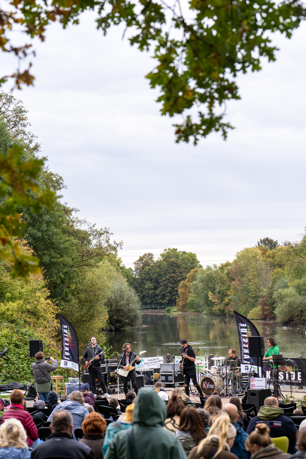 LAKESIDE im Oktober mit Kindern aus der HOT Billabong Musikwerkstatt, der Solokünstlerin Cary Zya und der fünfköpfigen Hardrock Band INVICTUS.