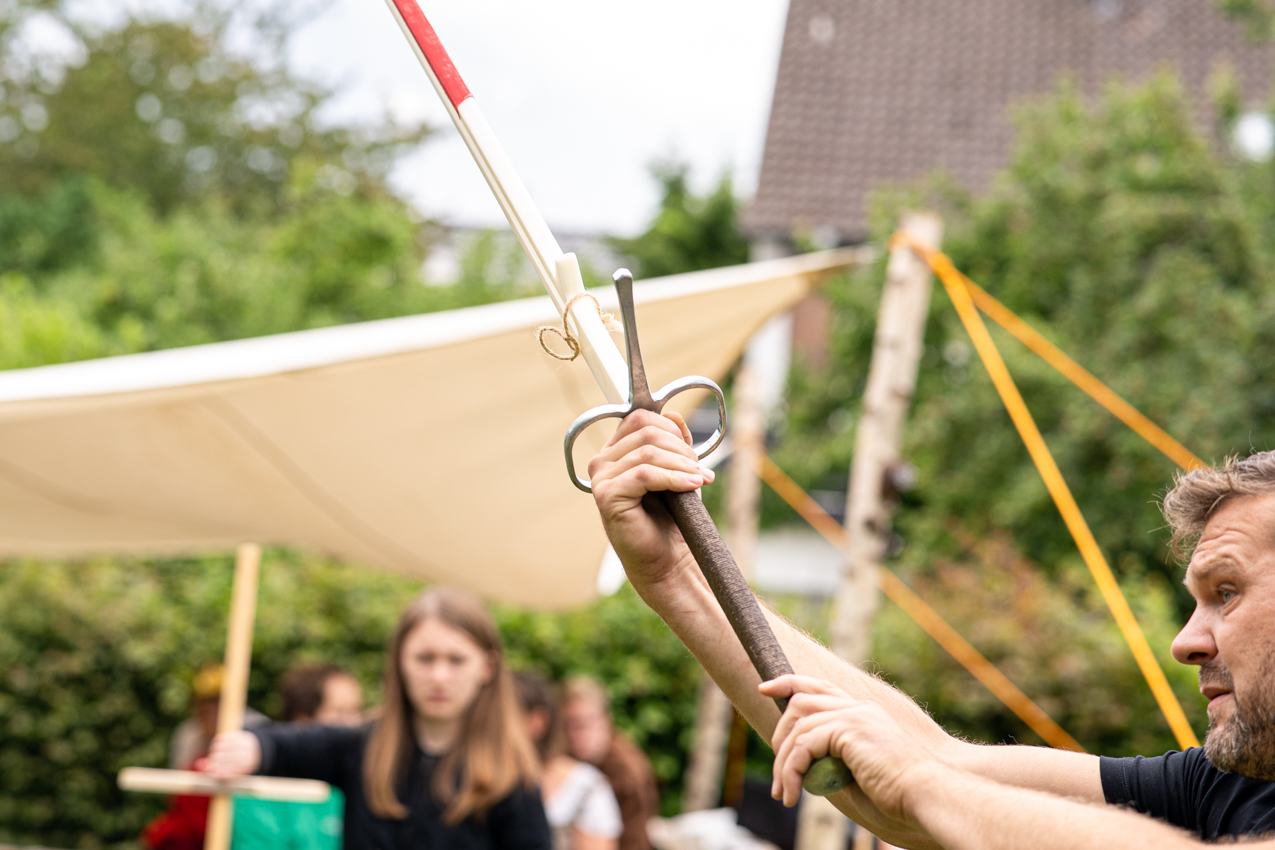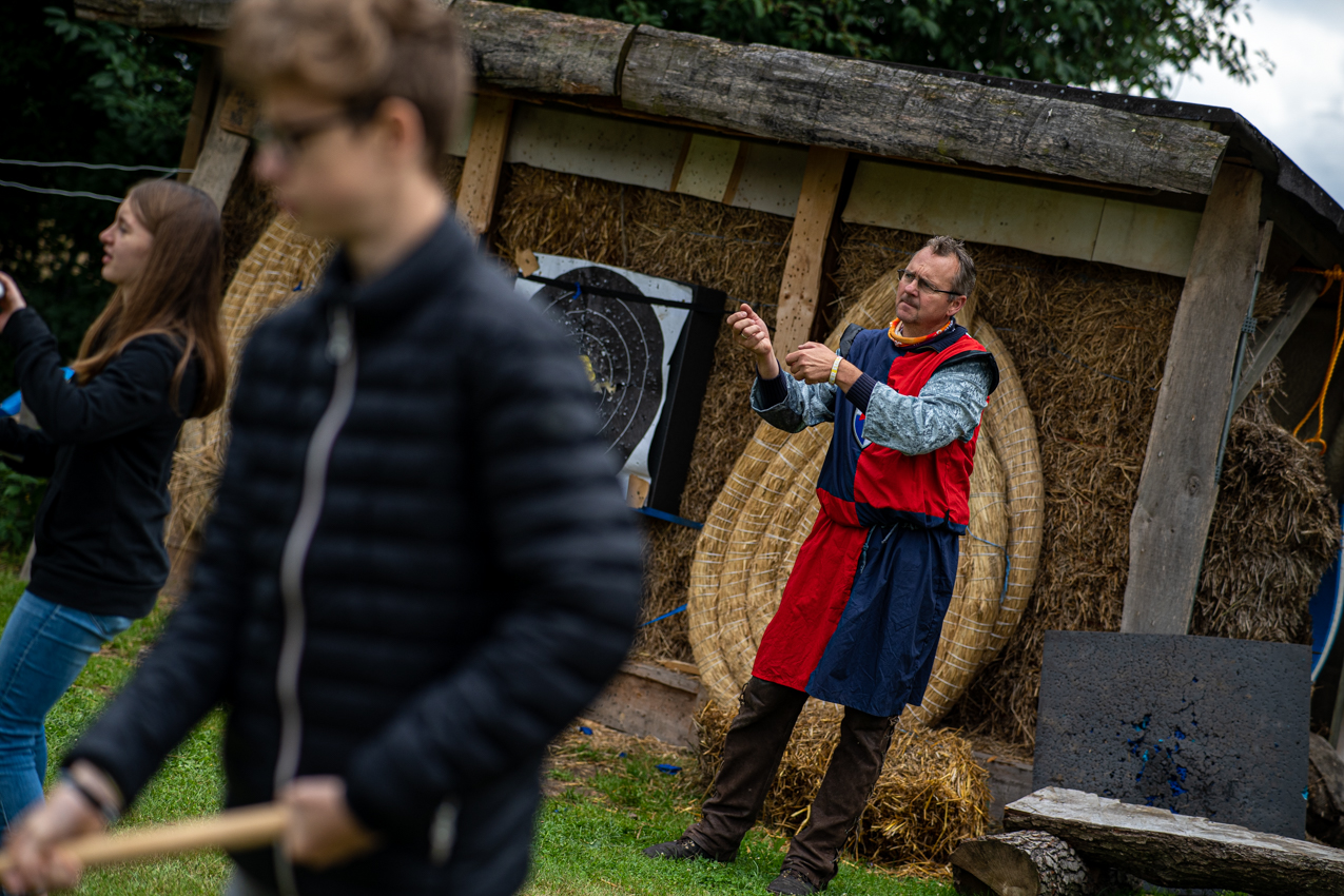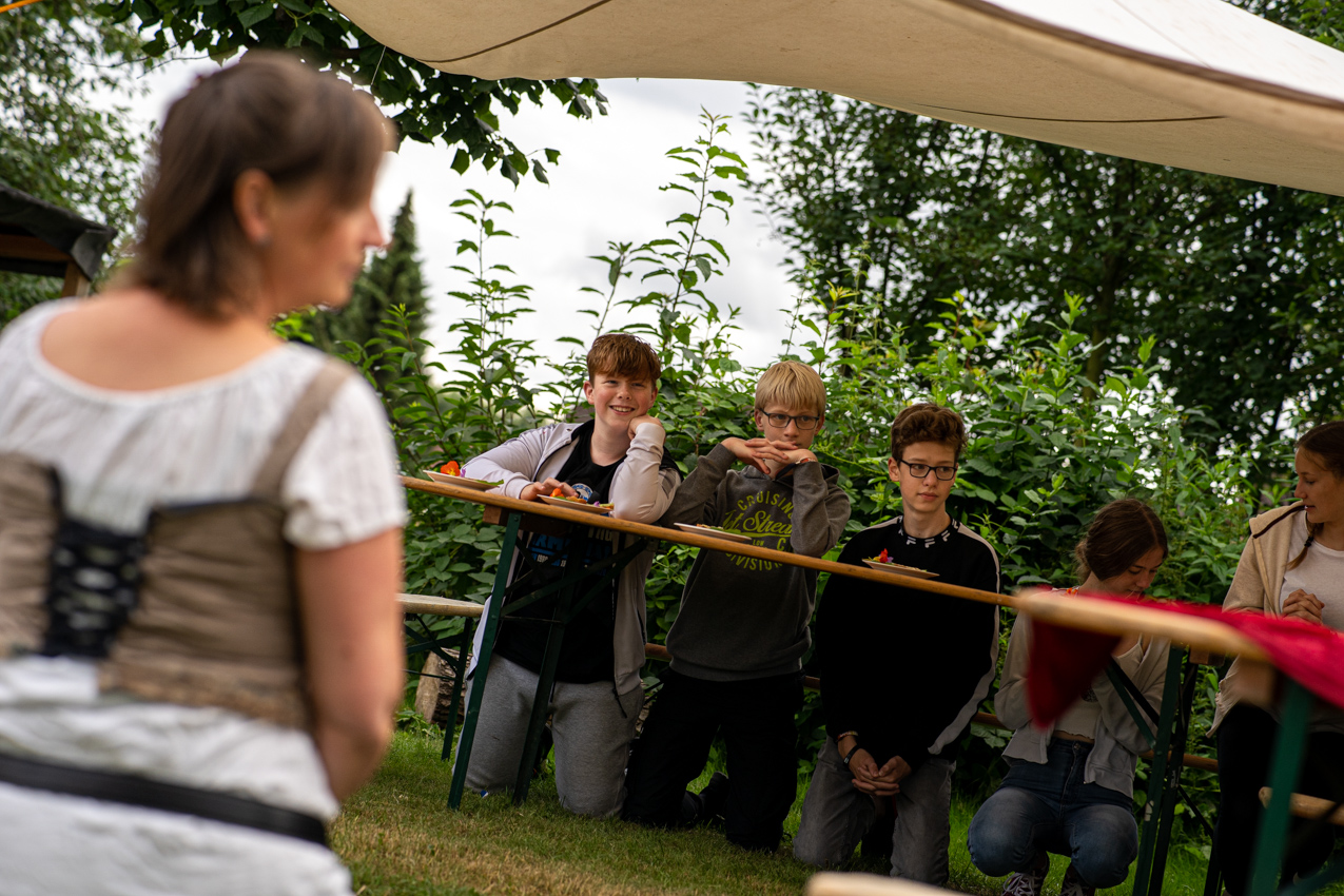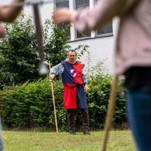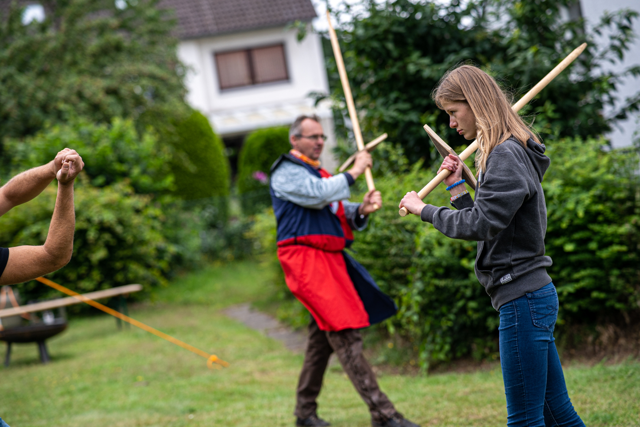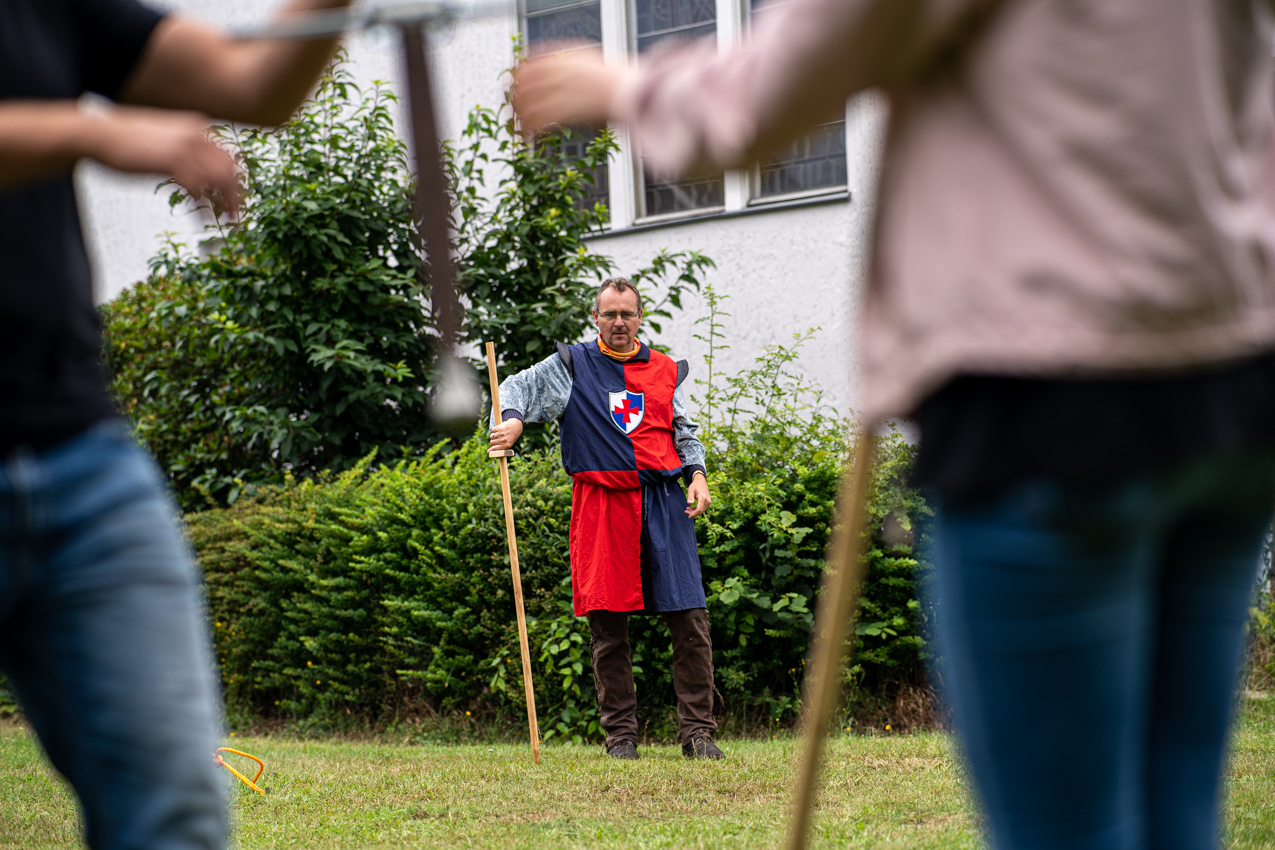 Bei den "Summer Feelings" in der Nachbarschaft 09 ging es unter anderem zum Kanufahren auf die Werre, auf die Kartbahn, in den Kletterpark & zum Bogenschießen. Das Lager wurde aber am Milser Gemeindehaus aufgeschlagen. Da gab es dann auch eine Einführung in den Schwertkampf mit anschließendem Krimidinner. Alles ganz im Zeichen des Mittelalters - der Landvogt gab sich die Ehre.