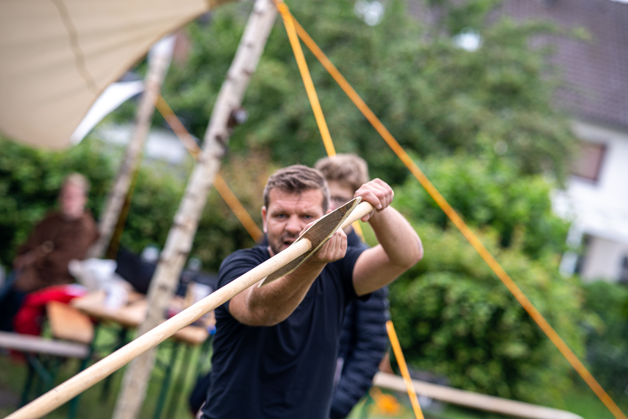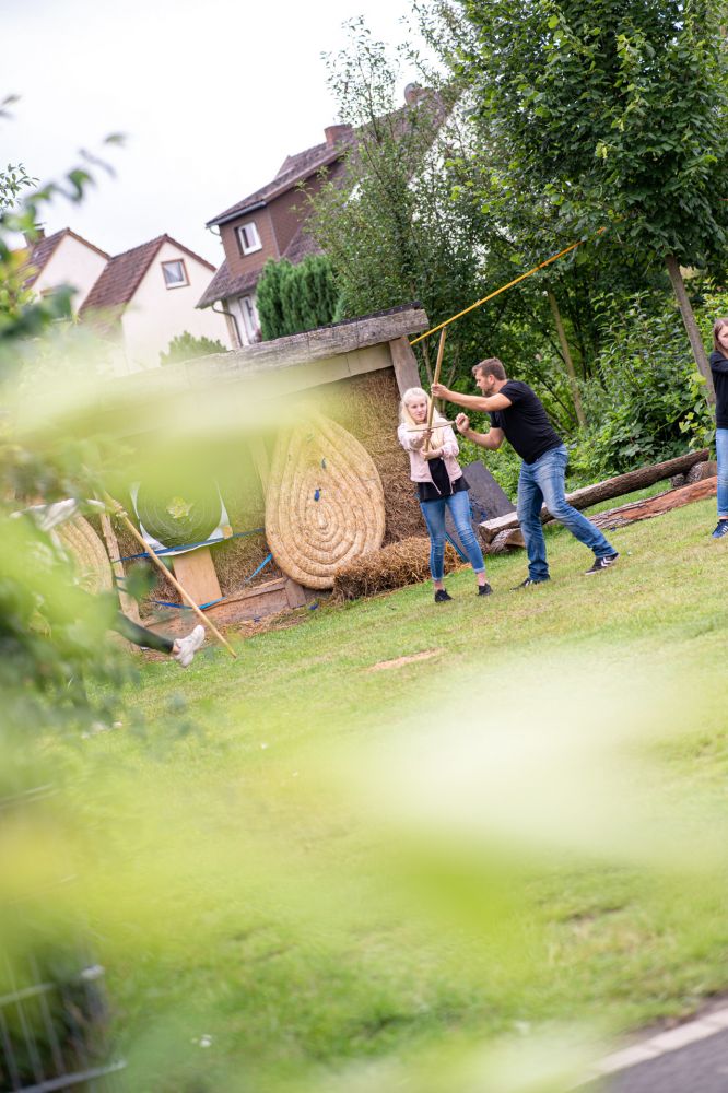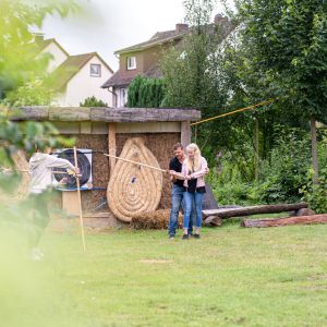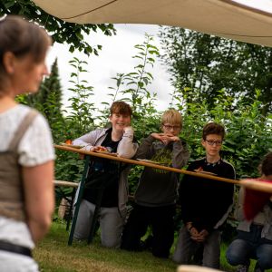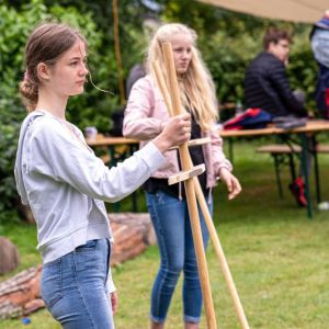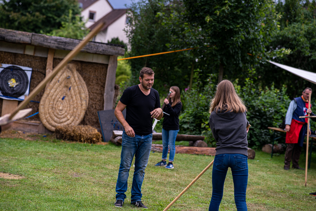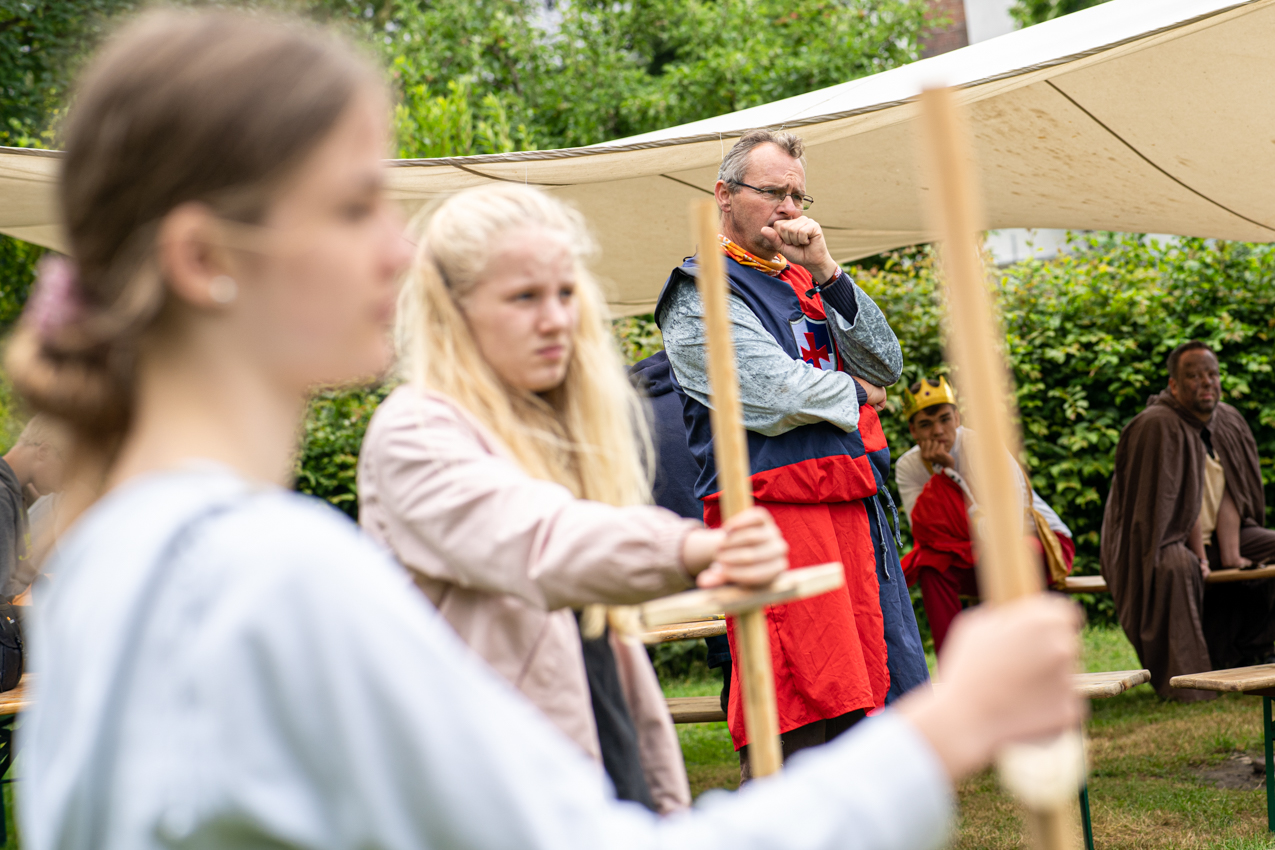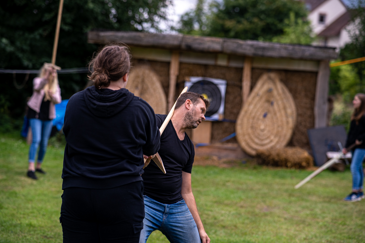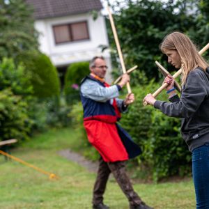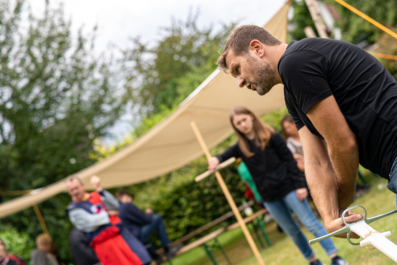 Bei den "Summer Feelings" in der Nachbarschaft 09 ging es unter anderem zum Kanufahren auf die Werre, auf die Kartbahn, in den Kletterpark & zum Bogenschießen. Das Lager wurde aber am Milser Gemeindehaus aufgeschlagen. Da gab es dann auch eine Einführung in den Schwertkampf mit anschließendem Krimidinner. Alles ganz im Zeichen des Mittelalters - der Landvogt gab sich die Ehre.