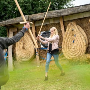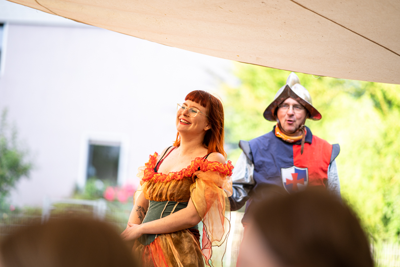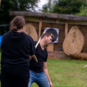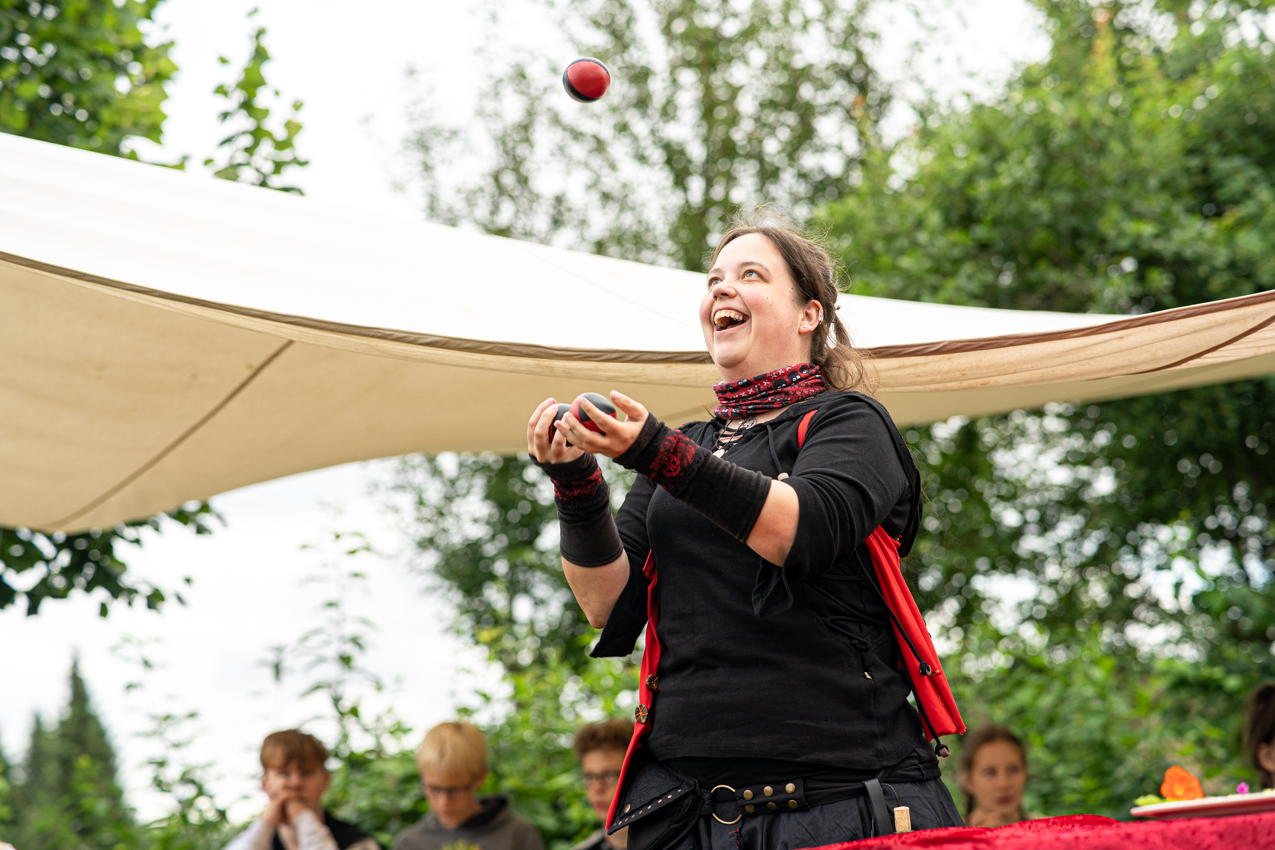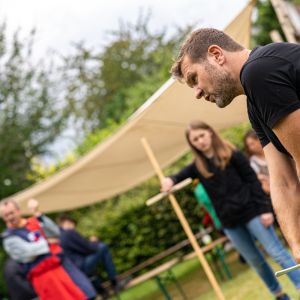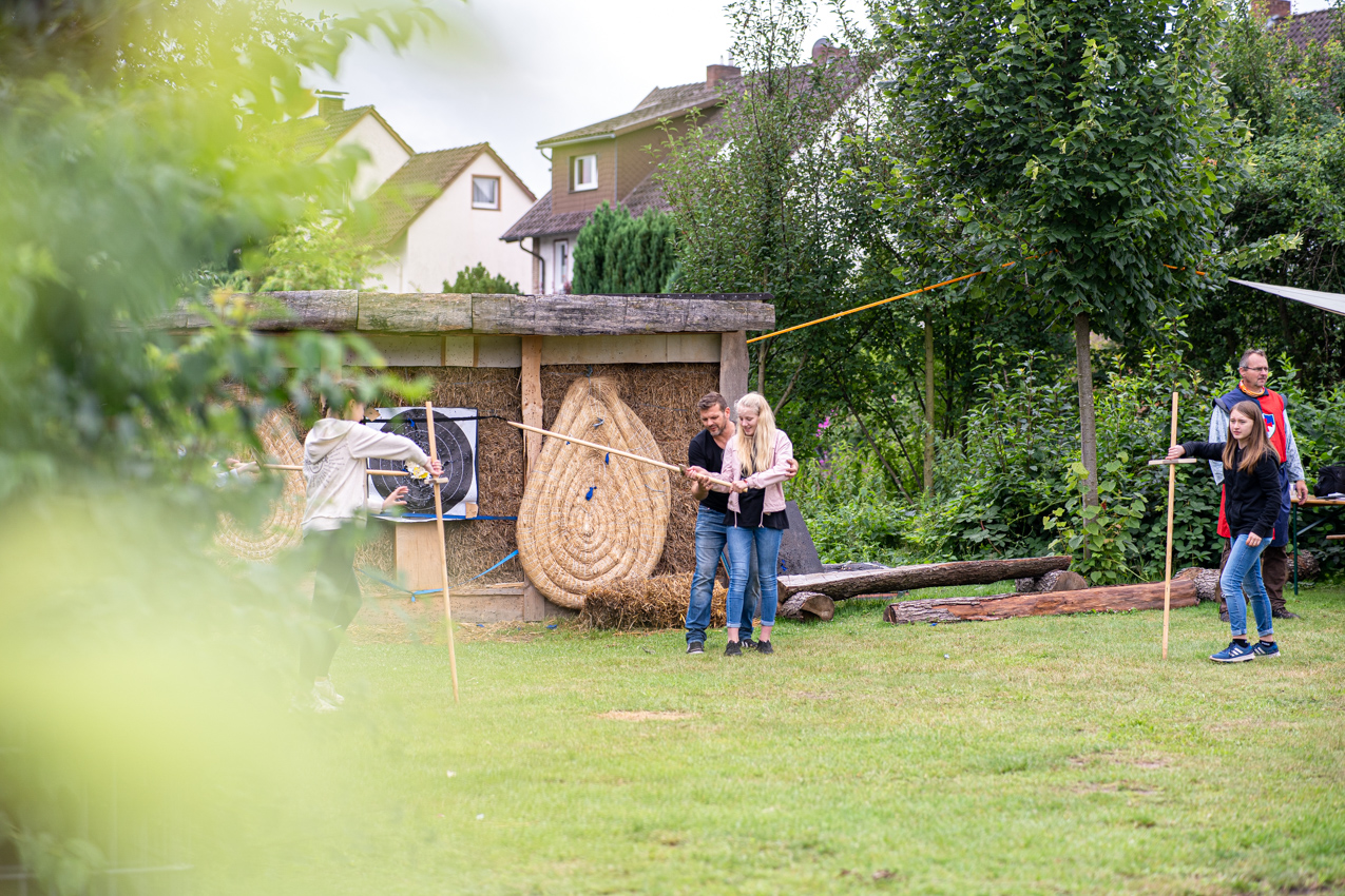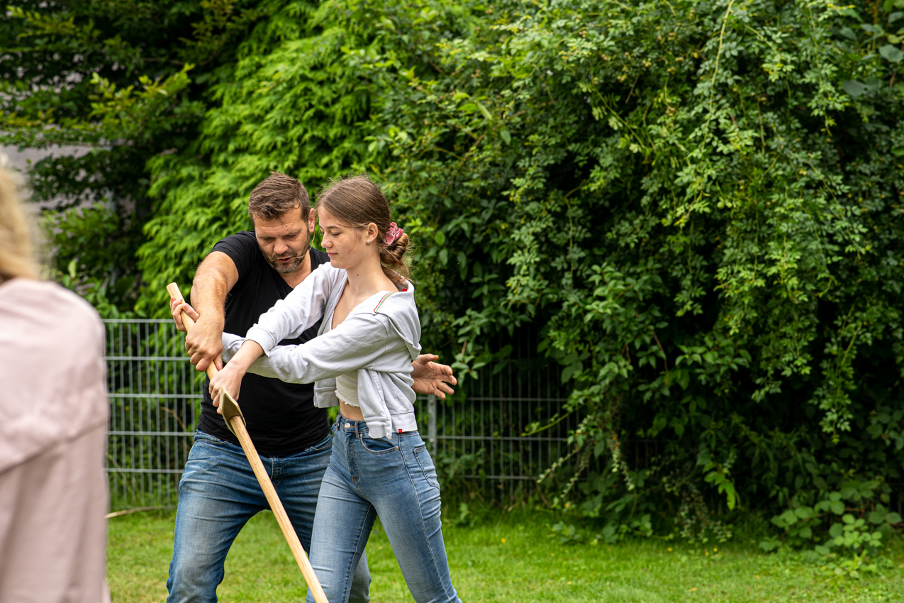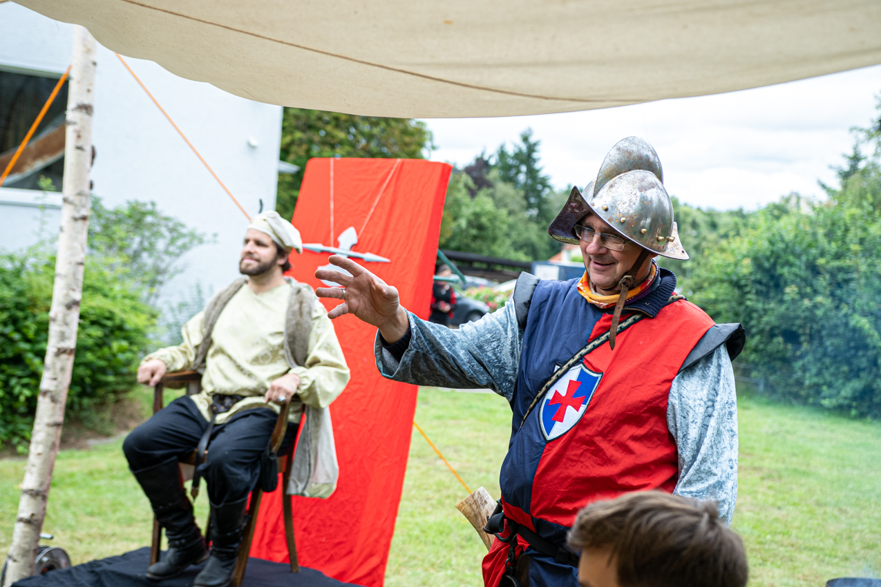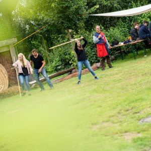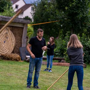 Bei den "Summer Feelings" in der Nachbarschaft 09 ging es unter anderem zum Kanufahren auf die Werre, auf die Kartbahn, in den Kletterpark & zum Bogenschießen. Das Lager wurde aber am Milser Gemeindehaus aufgeschlagen. Da gab es dann auch eine Einführung in den Schwertkampf mit anschließendem Krimidinner. Alles ganz im Zeichen des Mittelalters - der Landvogt gab sich die Ehre.